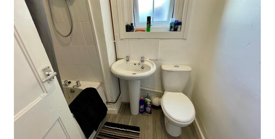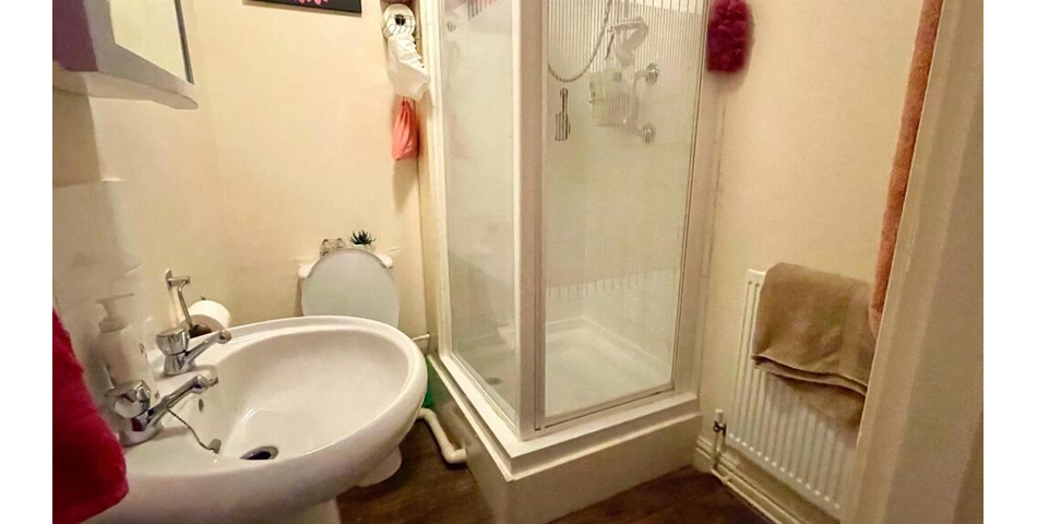Shared hall; ground floor studio Apt 1 with bedsitting room and en-suite 3-peice shower room;