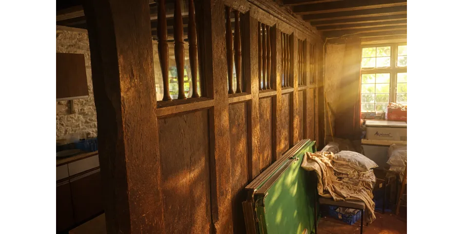 The accommodation includes a large hall on the upper floor. On the lower floor the space is divided by an oak screen, with each section having an external door. One section has a massive open fireplace. There is a very rudimentary kitchen installed in one section and a dumb waiter accessing between the two floors.
