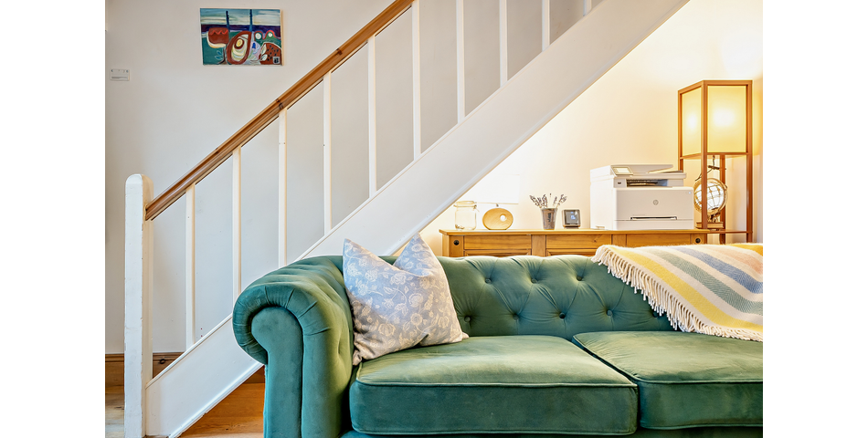 Arranged over three floors and extending to approximately 907 square feet, the property welcomes you into a charming sitting room with a large open fireplace, perfect for cosy evenings and relaxed entertaining. The well-proportioned kitchen provides ample space to dine, making it a sociable hub for family meals or gatherings with friends, and further benefits from a cosy log-burning stove. The kitchen opens out onto a tidy garden area with well-thought-out seating areas for those warmer days and nights.