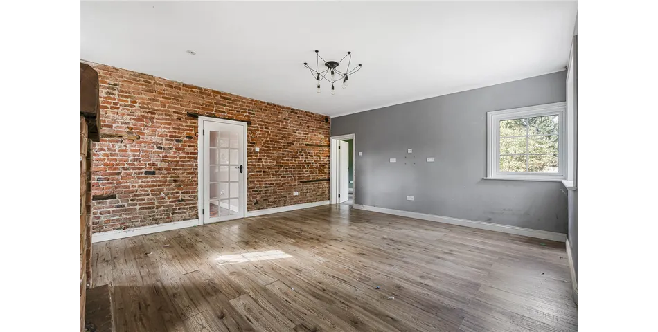 • A generous sitting room with dual aspect windows and a brick surround fireplace incorporating a log burning stove