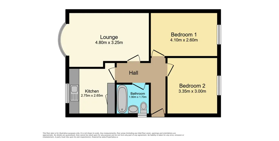 The accommodation comprises a central hallway leading to a spacious lounge, a separate kitchen, two well-proportioned bedrooms, and a family bathroom. The layout is practical and well-balanced, offering great potential to reconfigure or enhance (subject to the necessary permissions).