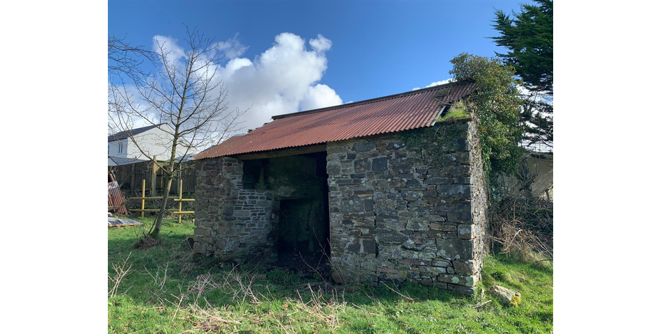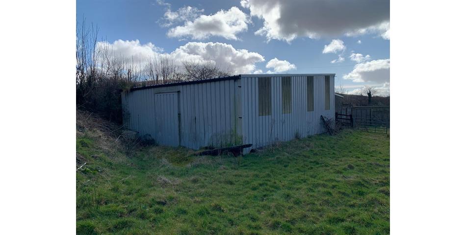 The land includes a collection of small enclosures which in total extends to about 1.85 acres of pasture. The land is mostly level and is surrounded by timber post and rail and chain-link fencing. There is a modern agricultural building situated to the southern entrance of the land which is constructed from a steel portal frame, clad in box profile sheeting over a concrete base. The building shares a party wall with a neighbouring property's outbuilding. At the centre of the land is a traditional stone building with a corrugated sheet steel roof. Another dilapidated structure stands along side the traditional building.