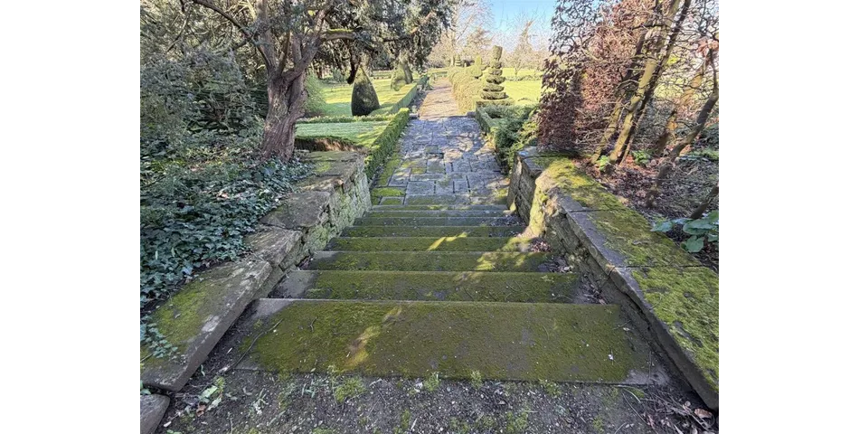 Outside Rear - The beautiful formal gardens extend to approximately half an acre and includes the original croquet lawn. There is a flagstone patio area with rose beds and low stone wall. The gardens are tree lined on the right hand side with topiary hedging at the rear and stone wall to the left. Behind the hedging is a wide walkway leading to double timber gates to Church Street.