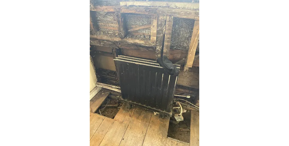 First floor: Landing, office and storage areas, kitchen now removed, cloakroom/WC (with available connections for bath, sink etc).