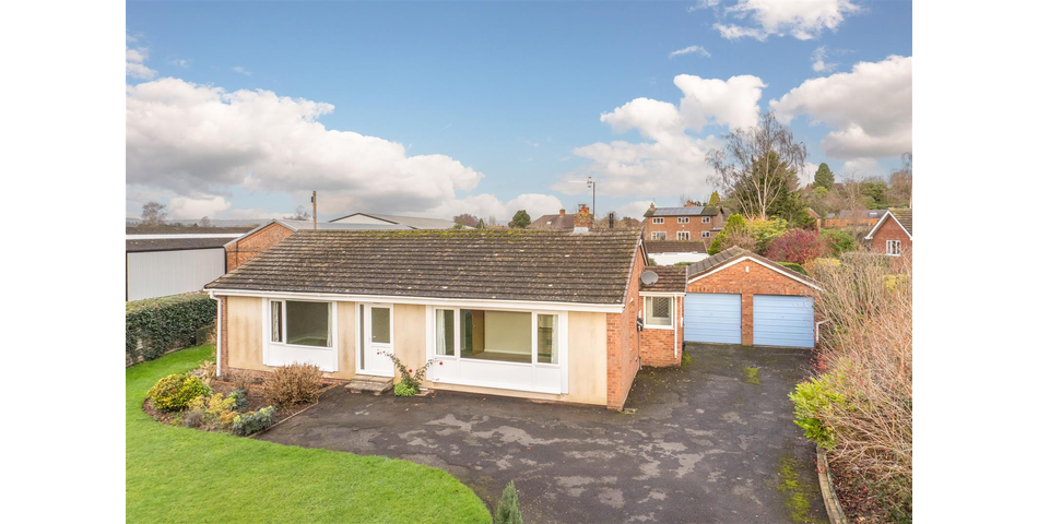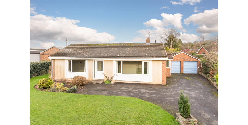 This spacious 3 bedroom detached bungalow of non-traditional construction is located in a select location within an easy walk of Ludlow’s historic town centre. The property sits in a plot extending to a 1/5th of an acre to include lawned garden, extensive driveway, detached double garage, workshop/store and mature gardens. Accommodation benefitting from upvc double glazing and oil fired heating briefly includes: Entrance Porch, Entrance Hall, Living Room with open fire, Kitchen/Dining Room, 3 good sized Bedrooms all with fitted wardrobes and a modern Bathroom. No onward chain.